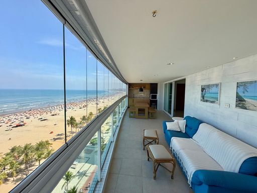 Apartamento à venda em Praia Grande na Vila Caiçara com excelente distribuição dos ambientes e localização privilegiada em prédio frente mar alto padrão. O imóvel possui 140 metros de área útil, conta com três quartos, sendo três suítes, além de dois banheiros social. A sala é espaçosa e totalmente mobiliada, integrada à sacada gourmet com churrasqueira a carvão, proporcionando conforto e funcionalidade no dia a dia. A cozinha é planejada e os quartos possuem móveis planejados, garantindo melhor aproveitamento dos espaços. O apartamento está totalmente mobiliado, com ar-condicionado instalado em todos os ambientes. A mobília está inclusa, sendo retirados apenas piano, os itens pessoais e de decoração. O imóvel aceita financiamento bancário e dispõe de três vagas coletivas de garagem. Localizado em um dos bairros mais valorizados de Praia Grande, no bairro Vila Caiçara este apartamento oferece conforto, lazer completo e a praticidade de morar de frente para o mar. Características do Imóvel Aceita financiamento bancário Prédio frente mar alto padrão 3 quartos 3 suítes 1 banheiro social 1 lavabo 3 vagas coletivas 140 metros de área útil Ar-condicionado em todos os ambientes Sala espaçosa Cozinha planejada Quartos com móveis planejados Sacada gourmet Churrasqueira a carvão Características do Empreendimento Portaria 24 horas Piscina Cinema Salão de festas Salão de jogos Sauna Brinquedoteca Academia Solarium Miniquadra Morar na Vila Caiçara é contar com uma excelente infraestrutura urbana, com comércios, serviços, restaurantes e fácil acesso às principais vias da cidade. O bairro é conhecido pela tranquilidade, valorização constante e pela proximidade com a praia, oferecendo qualidade de vida, praticidade e bem-estar para toda a família.