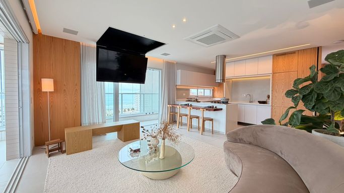 Apartamento no Canto do Forte – Praia Grande/SP Localizado em um dos endereços mais nobres da cidade, este apartamento de 181m² traduz sofisticação, amplitude e conforto em um dos bairros mais desejados de Praia Grande. O imóvel conta com 3 dormitórios, todos suítes, além de sala ampla integrada à varanda gourmet envidraçada, ideal para momentos de lazer e convívio em família. Para maior comodidade, dispõe ainda de 3 vagas privativas de garagem. Características do imóvel: 181m² de área útil 3 dormitórios, todos suítes Sala ampla para 2 ambientes Varanda gourmet envidraçada Cozinha planejada Área de serviço independente 3 vagas privativas de garagem Destaques do condomínio: Piscina adulto e infantil Espaço gourmet Salão de festas Cinema Academia completa Beauty Center Sauna Quadra poliesportiva Pet Care Brinquedoteca Portaria 24h com segurança presencial O edifício é de alto padrão, com infraestrutura de lazer completa e ambientes cuidadosamente planejados para proporcionar bem-estar e qualidade de vida em todos os momentos. Sobre o bairro Canto do Forte: Reconhecido por sua excelência, o Canto do Forte é uma das regiões mais valorizadas de Praia Grande. Com ruas arborizadas, ampla variedade de comércios, restaurantes renomados e fácil acesso às principais vias da cidade, oferece o equilíbrio perfeito entre exclusividade, conveniência e proximidade da praia.