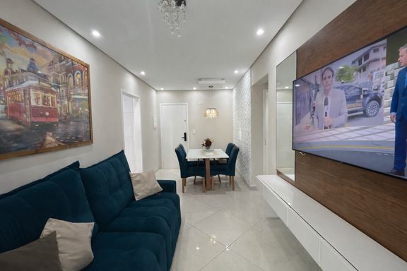 Apartamento à venda em Praia Grande na Vila Caiçara com excelente localização a apenas 350 metros da praia, ideal para quem busca conforto, praticidade e qualidade de vida no litoral. O imóvel possui 80 metros de área útil muito bem distribuídos, com 2 suítes, 1 lavabo, sala espaçosa integrada à sacada gourmet com churrasqueira elétrica, proporcionando um ambiente perfeito para receber amigos e familiares. Conta com cozinha planejada e quartos com móveis planejados, além de infraestrutura para ar condicionado em todos os ambientes. O apartamento será entregue com mobília inclusa, sendo retirados apenas itens específicos como tvs, fogão, máquina de lavar, máquina de gelo, aparadores, cadeiras da sacada e itens pessoais. Possui ainda 2 vagas de garagem e aceita financiamento bancário, facilitando a aquisição. Características do imóvel Aceita financiamento bancário 350 metros de distância da praia 2 suítes 2 vagas de garagem 1 lavabo 80 metros de área útil Mobília inclusa com exceção de tvs, fogão, máquina de lavar, máquina de gelo, aparadores, cadeiras da sacada e itens pessoais Sacada gourmet Churrasqueira elétrica Infraestrutura para ar condicionado em todos os ambientes Sala espaçosa Cozinha planejada Quartos com móveis planejados Características do empreendimento Portaria remota Piscina descoberta Salão de festas Salão de jogos Sauna Brinquedoteca Academia A Vila Caiçara é um dos bairros mais procurados de Praia Grande, oferecendo excelente infraestrutura, comércios variados, mercados, padarias e fácil acesso à praia. É uma região que combina tranquilidade com praticidade, ideal tanto para moradia quanto para veraneio, além de apresentar grande potencial de valorização imobiliária.