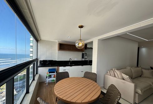 Localizado em um empreendimento de alto padrão à beira-mar, este apartamento oferece conforto, sofisticação e uma vista definitiva para o oceano. Por estar estrategicamente posicionado é possível observar o mar de todos os cômodos desse maravilhoso apartamento. Com 213 metros de área útil, distribuído em quatro dormitórios, sendo uma suíte master com closet e banheira de hidromassagem, uma suíte convencional com vista frente para o mar e mais dois dormitórios padrão. Você já conta com armários planejados para garantir praticidade no dia a dia. A cozinha está planejada e equipada, aquecimento central a gás e ar-condicionado já instalados. A sacada gourmet com churrasqueira é muito espaçosa e ideal para momentos de lazer, complementada pela vista privilegiada. Para aumentar seu conforto disponha de duas vagas de garagem demarcadas. Além disso, o financiamento bancário é aceito, facilitando a aquisição. Características do imóvel: Empreendimento alto padrão frente ao mar Vista mar lateral Aceita financiamento bancário 213 metros de área útil 04 dormitórios (mais dependência de empregada) 02 suítes 04 banheiros, mais lavabo Mobiliado, saem itens pessoais e decoração Ambientes com armários planejados Sacada gourmet com churrasqueira Aquecimento a gás 02 vagas de garagem demarcadas Infraestrutura do empreendimento: Portaria presencial 24h Piscina em formato de proa de navio com borda infinita Sauna Hidromassagem Espaço mulher com salão de cabelereiro, manicure e espaço para massagem Salão de festas Salão de jogos Academia O Canto do Forte é um dos bairros mais desejados de Praia Grande, conhecido pela segurança, infraestrutura e qualidade de vida. Com ampla oferta de comércio, restaurantes e serviços, proporciona praticidade no dia a dia. Além disso, a proximidade com a praia e a natureza faz do bairro um local ideal para quem busca tranquilidade sem abrir mão da conveniência urbana.