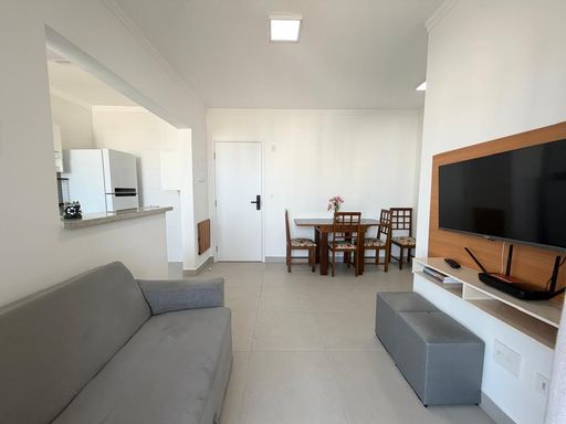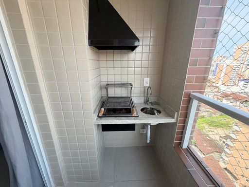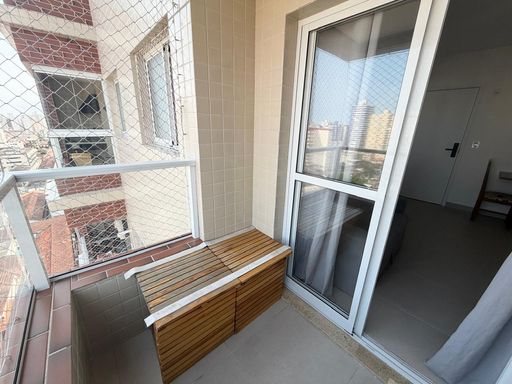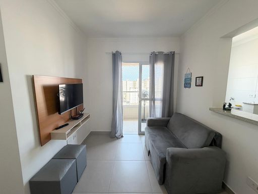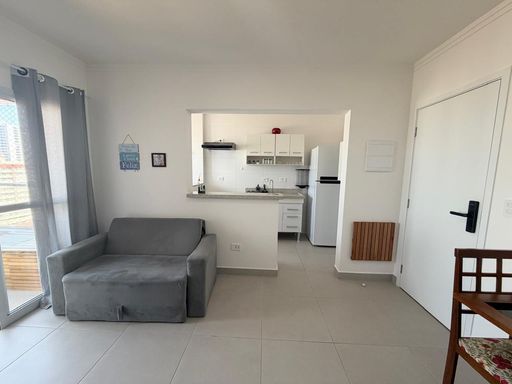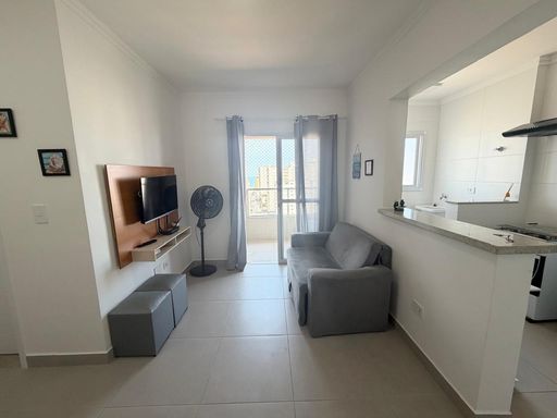 Apartamento à venda em Praia Grande na Aviação, localizado a 500 metros de distância da praia. O imóvel possui 43 metros de área útil, com 1 quarto, 1 banheiro social e 1 vaga livre de garagem. O apartamento será vendido vazio, permitindo personalização de acordo com a preferência do comprador. Conta com sacada gourmet equipada com churrasqueira elétrica, além de estar em andar alto com vista para o mar.