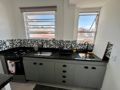 Este apartamento à venda em Praia Grande no Canto do Forte está localizado a apenas 350 metros da praia e possui 40 m² de área útil. O imóvel conta com 1 quarto, 1 banheiro social e 1 vaga livre de garagem.