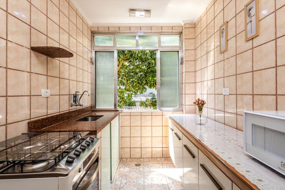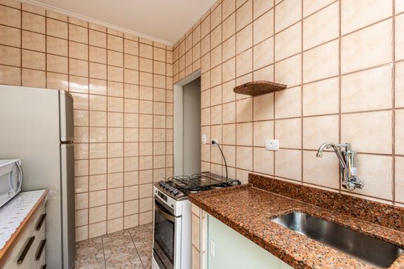 Com 43,06 metros de área útil, o apartamento possui ambientes bem distribuídos, com 1 sala espaçosa e mobiliada, 1 quarto com mobília e ar condicionado, cozinha com armários e 1 banheiro social com box de vidro. O imóvel está mobiliado, sendo retirados apenas itens pessoais. Conta ainda com 1 vaga coberta marcada e aceita financiamento bancário, facilitando a aquisição.