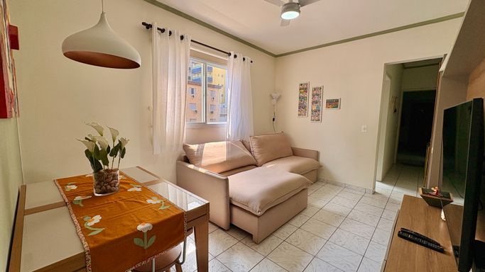 Ideal para quem busca praticidade e boa localização no litoral. Este imóvel está a 200 metros de distância da praia, oferecendo fácil acesso ao mar no dia a dia. Com 50 metros de área útil, o apartamento conta com 1 quarto, 1 banheiro social e 1 vaga livre, com ambientes bem distribuídos. A sala é espaçosa e o dormitório possui sacada, agregando ventilação e iluminação natural ao ambiente. O imóvel aceita financiamento bancário. O empreendimento possui portaria semipresencial, contribuindo para o controle de acesso.