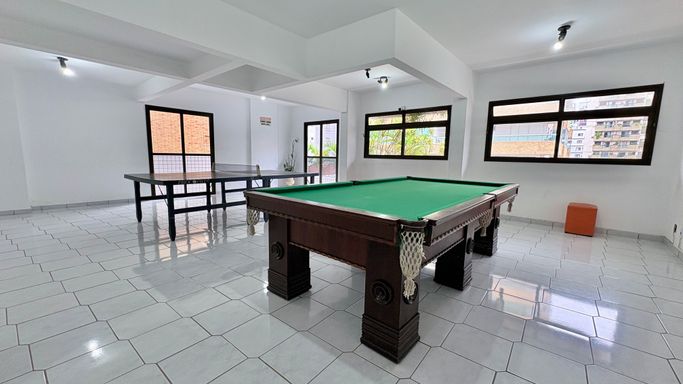 O empreendimento conta com portaria presencial e oferece estrutura de lazer com piscina, salão de festas, salão de jogos e brinquedoteca, proporcionando opções de convivência e lazer para os moradores.