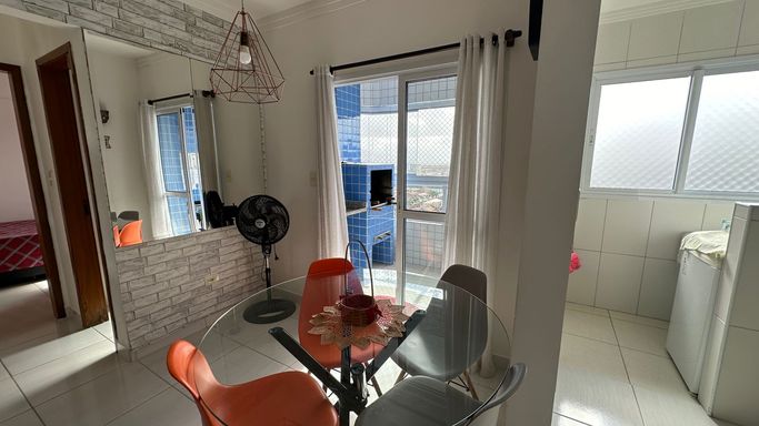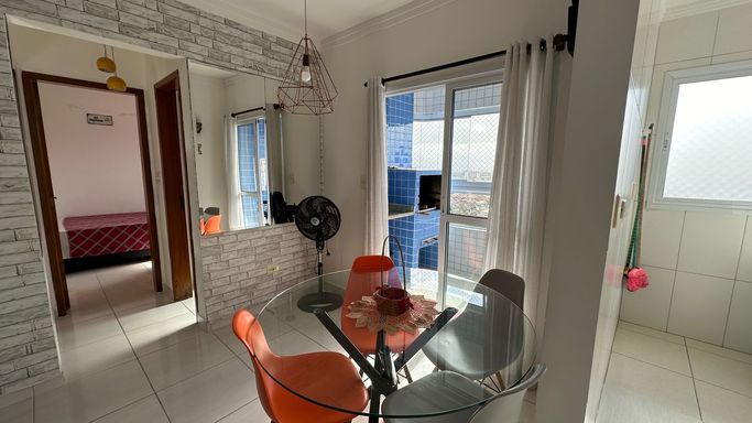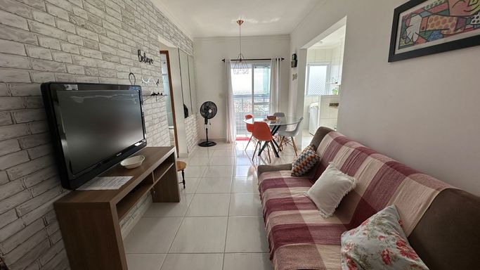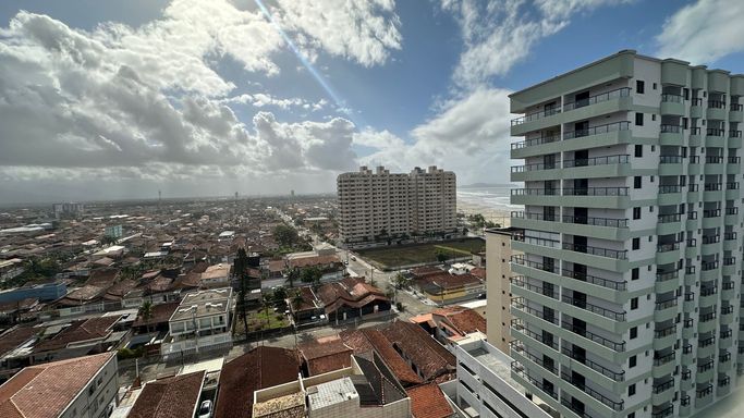 Apartamento à venda em Praia Grande no Maracanã, localizado em prédio frente mar, com vista lateral para o mar. O imóvel possui 42 metros de área útil, distribuídos em 1 quarto, sala espaçosa, cozinha americana e sacada gourmet com churrasqueira a carvão. Aceita financiamento bancário e conta com 1 vaga de garagem. O apartamento está mobiliado, sendo que o vendedor irá retirar alguns itens e objetos pessoais. Possui infraestrutura para ar-condicionado em todos os ambientes. O empreendimento oferece portaria no local, piscina, salão de festas, salão de jogos e academia, garantindo conforto e praticidade no dia a dia.