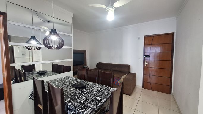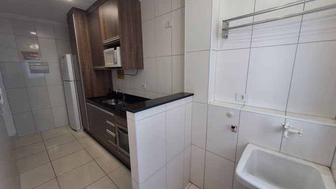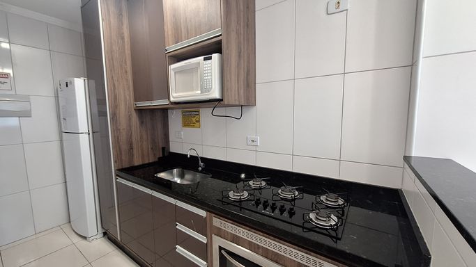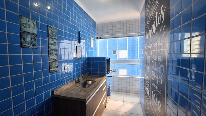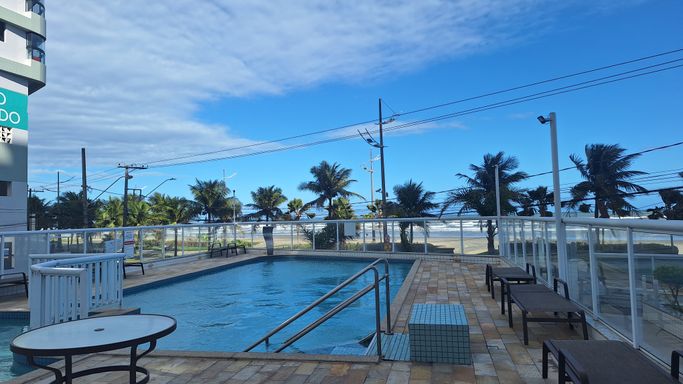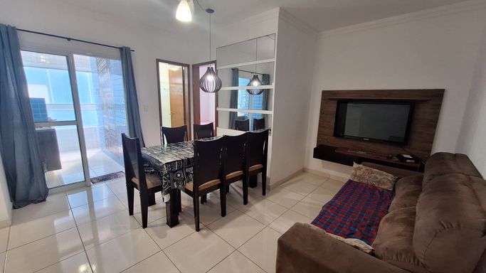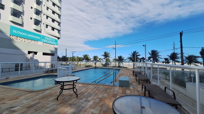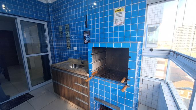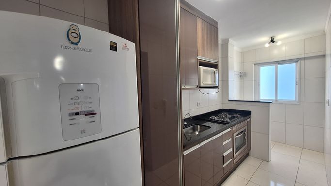 A sala é espaçosa e mobiliada, proporcionando um ambiente aconchegante para o dia a dia. A cozinha planejada traz funcionalidade e aproveitamento inteligente do espaço. A sacada gourmet com churrasqueira a carvão é perfeita para desfrutar de momentos de lazer com vista para o mar. Além de aceitar financiamento bancário, este imóvel se destaca pela excelente localização e estrutura completa.