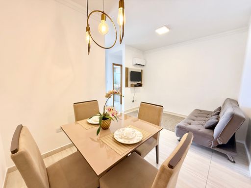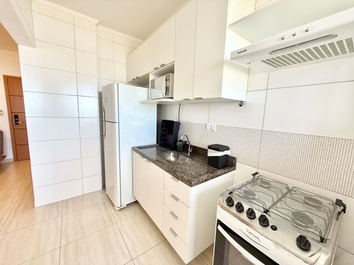 A cozinha mobiliada traz praticidade para o preparo das refeições e se integra bem ao restante do imóvel. A sacada com vista livre valoriza ainda mais o apartamento, permitindo aproveitar a iluminação natural e a ventilação do ambiente. A mobília está inclusa na venda, sendo retirados apenas itens pessoais e de decoração, o que torna o imóvel pronto para morar ou investir.