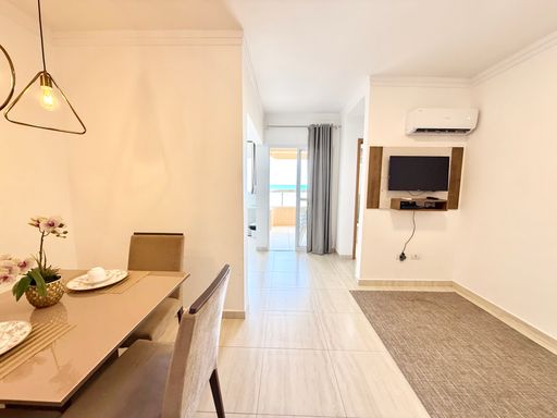 Localizado em um empreendimento frente mar, o apartamento também dispõe de 1 vaga coletiva de garagem e aceita financiamento bancário, facilitando o processo de aquisição. O condomínio oferece estrutura completa com portaria 24 horas, piscina, salão de festas e salão de jogos, proporcionando segurança, lazer e comodidade para moradores e visitantes.