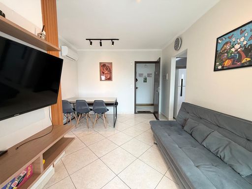 Apartamento à venda em Praia Grande na Ocian, uma excelente oportunidade para quem busca praticidade, localização estratégica e imóvel pronto para uso. Disponível para pagamento à vista, o apartamento está localizado a 300 metros de distância da praia e possui 47 metros de área útil. Conta com um quarto, um banheiro social e uma vaga de garagem livre. O imóvel está com a mobília inclusa, oferecendo mais comodidade desde o primeiro dia. A planta é bem distribuída, com sala espaçosa e mobiliada integrada à sacada gourmet com churrasqueira. A cozinha é planejada e o apartamento está totalmente mobiliado, além de possuir ar condicionado em todos os ambientes. Há possibilidade de permuta, conforme condições a serem avaliadas.