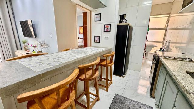 Apartamento à venda em Praia Grande na Vila Caiçara, localizado a 280 metros da praia, ideal para quem busca praticidade e fácil acesso ao mar. O imóvel possui 44 metros de área útil, distribuídos em 1 quarto, sala espaçosa e mobiliada, 1 banheiro social e sacada. Conta ainda com 1 vaga coletiva e aceita financiamento bancário. A mobília está inclusa, sendo retirados apenas itens de decoração e objetos pessoais, o que facilita a mudança. O empreendimento oferece portaria, salão de festas, salão de jogos e brinquedoteca, proporcionando conforto e opções de lazer no dia a dia.