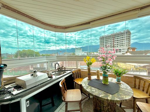 Este apartamento mobiliado com vista para o mar está disponível para venda em Praia Grande, no bairro Caiçara. Com 50 metros de área útil, 1 quarto, 1 banheiro social e 1 vaga de garagem, é uma opção prática e confortável para quem busca morar ou investir próximo ao litoral. Localizado a apenas 350 metros da praia, o imóvel conta com sacada gourmet fechada em vidro, churrasqueira elétrica e ambientes planejados que garantem praticidade e aproveitamento dos espaços. O apartamento ficará com apenas os móveis fixos