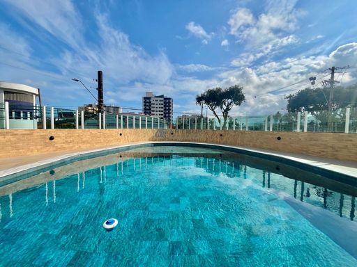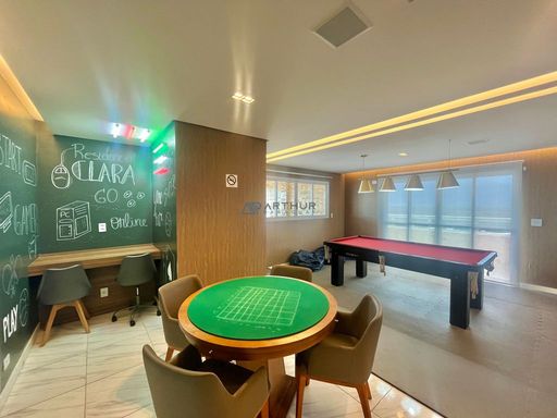 O empreendimento oferece estrutura de lazer e segurança, com portaria presencial 24 horas, piscina, cinema, salão de festas, salão de jogos, brinquedoteca, academia e solarium, proporcionando comodidade e opções de lazer para moradores e visitantes.