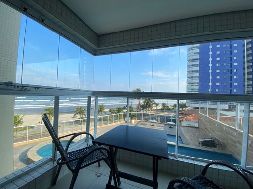 Apartamento à venda em Praia Grande localizado em prédio frente mar, ideal para quem busca conforto, lazer completo e excelente localização. O imóvel possui 52,37m² de área útil, com 1 quarto sendo suíte, além de um banheiro social. A sala é espaçosa e já mobiliada, integrada à sacada gourmet com churrasqueira, perfeita para momentos de lazer. A cozinha é planejada e os quartos possuem móveis planejados, garantindo praticidade e organização. O apartamento está totalmente mobiliado, sendo retirados apenas os itens pessoais.