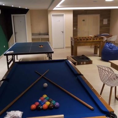 O condomínio oferece infraestrutura completa de lazer e segurança, com portaria 24 horas, piscina, cinema, salão de festas, salão de jogos, sauna, brinquedoteca e academia. Além disso, conta com uma vaga de garagem, proporcionando comodidade para os moradores.