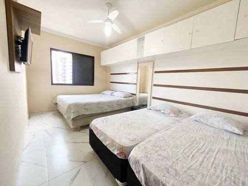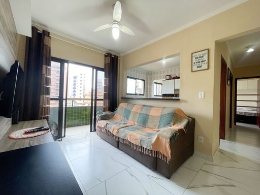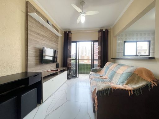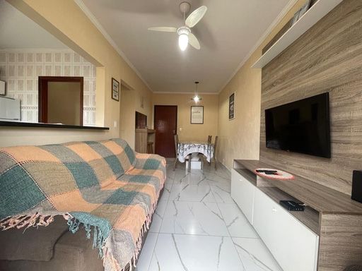 Apartamento à venda em Praia Grande na Vila Tupi 450 metros da praia. Este imóvel é uma opção interessante para quem busca um apartamento funcional, bem localizado e pronto para uso no litoral. Com 56 metros de área útil, o apartamento conta com 1 quarto, 1 banheiro social, sala mobiliada e cozinha com móveis, oferecendo um ambiente organizado e prático para o dia a dia. O imóvel está totalmente mobiliado, sendo retirados apenas itens pessoais e decorativos. A unidade também possui sacada e dispõe de 1 vaga de garagem coletiva. O apartamento aceita financiamento bancário e está localizado a aproximadamente 450 metros da praia, em um condomínio que oferece estrutura com portaria 24 horas, piscina, salão de festas e salão de jogos.
