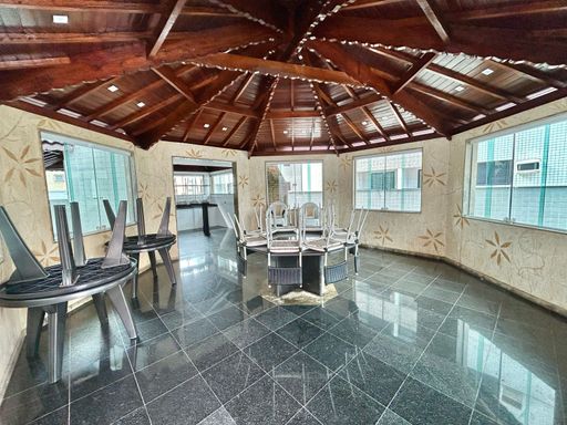 O condomínio oferece uma infraestrutura completa de lazer na cobertura, incluindo piscina, salão de festas, salão de jogos, sauna, academia e solarium, proporcionando comodidade e qualidade de vida para toda a família.
