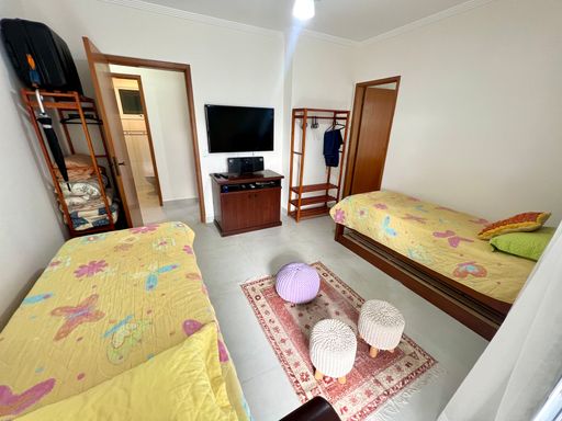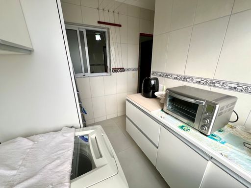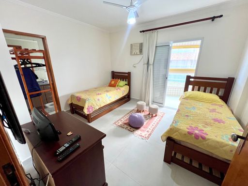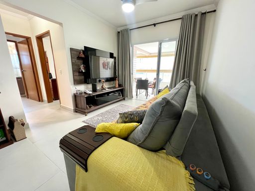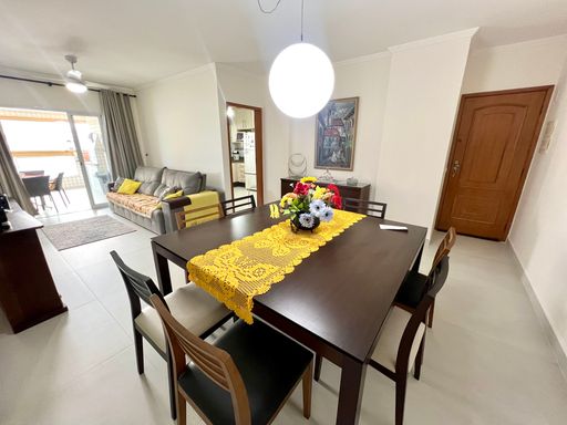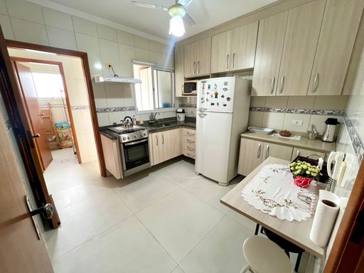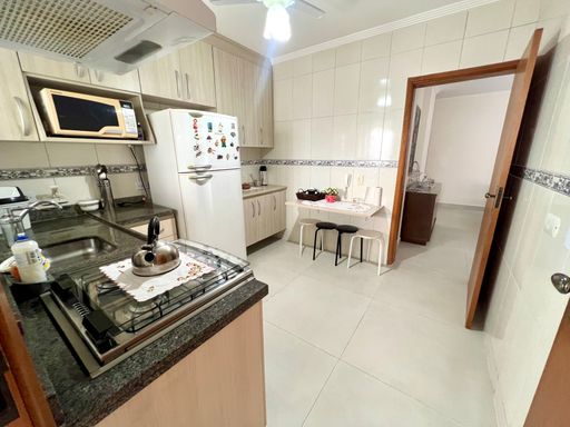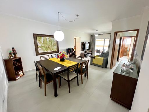 Este apartamento à venda em Praia Grande, no bairro Aviação, oferece conforto e praticidade a apenas 50 metros da praia. Com 105 metros de área útil, o imóvel possui 2 quartos, sendo 2 suítes, 1 banheiro social e 2 vagas de garagem livres. Está totalmente mobiliado, permanecendo com todos os móveis fixos, sendo retirados apenas itens pessoais e de decoração.