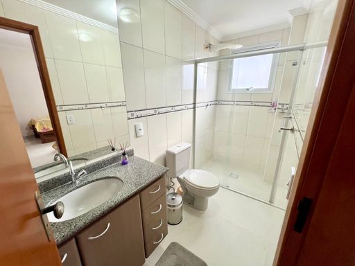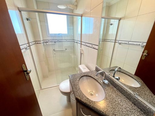 O apartamento conta com uma ampla sacada gourmet equipada com churrasqueira a carvão, ideal para momentos de lazer. Todos os ambientes possuem ar-condicionado, e a sala espaçosa integra-se perfeitamente à cozinha planejada e aos quartos com móveis sob medida.