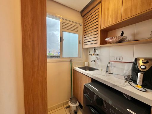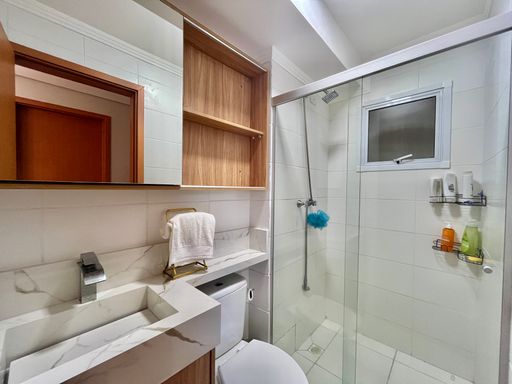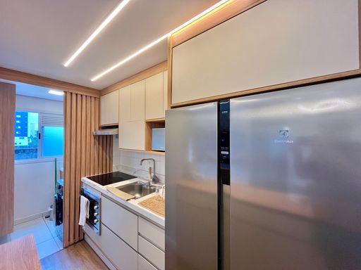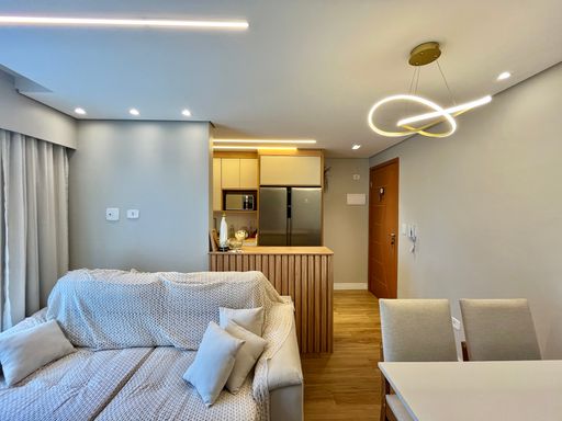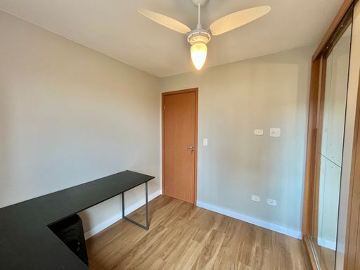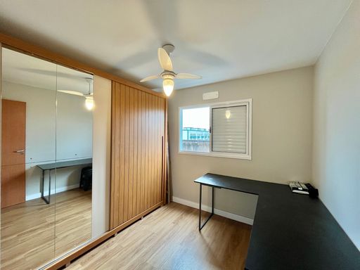 A unidade possui 2 quartos amplos, 1 banheiro social e sacada gourmet. O apartamento permanecerá semi mobiliado, ficando no imóvel os armários planejados, aquecedor a gás, ventiladores de teto e painel de TV, enquanto os demais itens serão retirados. A unidade também possui 1 vaga de garagem livre.
