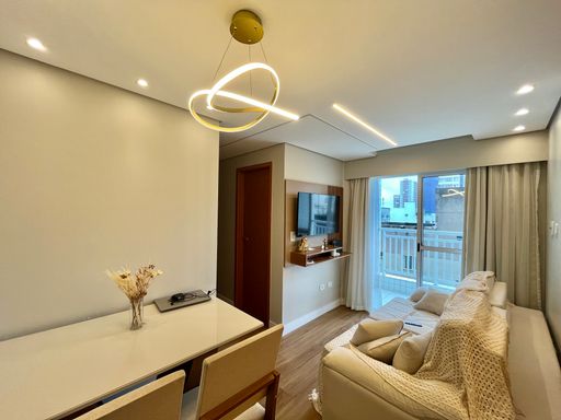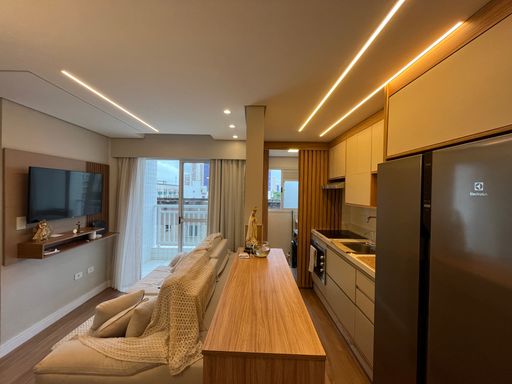 É uma excelente oportunidade para quem busca um imóvel funcional no litoral. Localizado a aproximadamente 400 metros de distância da praia, o apartamento possui 47,21 metros de área útil e apresenta uma distribuição prática dos ambientes. O imóvel conta com sala espaçosa integrada à cozinha planejada, criando um espaço contínuo para o dia a dia.