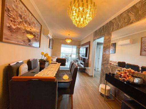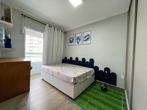 Apartamento à venda em Praia Grande na Aviação 150 metros da praia, ideal para quem busca conforto, localização estratégica e estrutura completa de lazer. Com 77,09 metros de área útil, o imóvel possui 2 quartos, sendo 1 suíte, 1 banheiro social, sala espaçosa, cozinha planejada e sacada gourmet com churrasqueira elétrica. Permanecerá com mobília planejada, ar condicionado, painel e espelhos, sendo retirados apenas os itens pessoais. Conta ainda com ar condicionado na sala e no quarto da suíte, além de 2 vagas de garagem cobertas e fixas. Aceita financiamento bancário e não aceita permuta. Localizado a 150 metros de distância da praia, oferece praticidade para o dia a dia e fácil acesso ao mar.