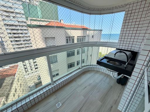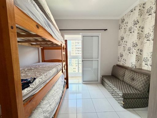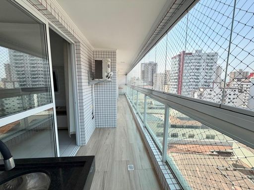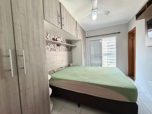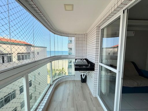 Apartamento à venda em Praia Grande na Aviação, localizado em prédio frente mar, com 78 metros de área útil e ambientes bem distribuídos. O imóvel conta com 2 quartos, sendo 1 suíte, banheiro social, sala espaçosa e mobiliada, cozinha planejada e quartos com móveis planejados. A sacada gourmet com churrasqueira elétrica e vista para o mar complementa o espaço, proporcionando um ambiente funcional. O apartamento está totalmente mobiliado. Possui 1 vaga de garagem livre e aceita financiamento bancário. O empreendimento oferece portaria 24 horas, piscina e salão de jogos.