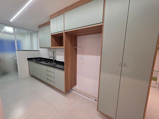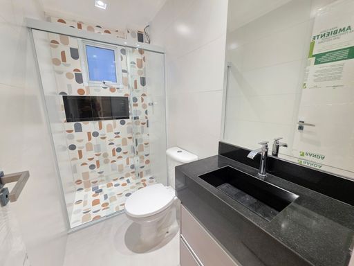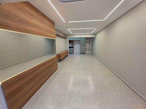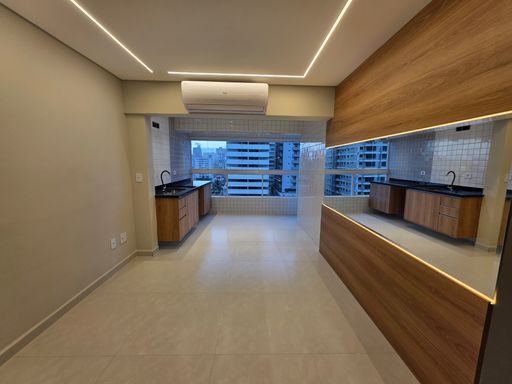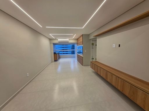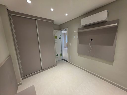 O apartamento é recém-entregue, em prédio novo, e possui uma sacada gourmet com churrasqueira a gás, perfeita para reunir a família e aproveitar a vista lateral do mar. A infraestrutura para ar-condicionado em todos os ambientes garante praticidade e conforto térmico. A sala é espaçosa, ideal para ambientes integrados, e a cozinha é ampla, atendendo perfeitamente quem valoriza espaço e funcionalidade.