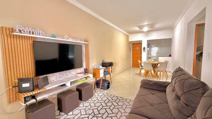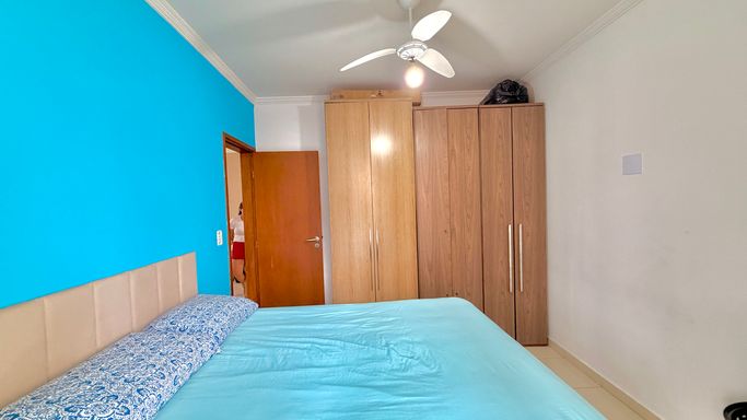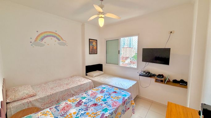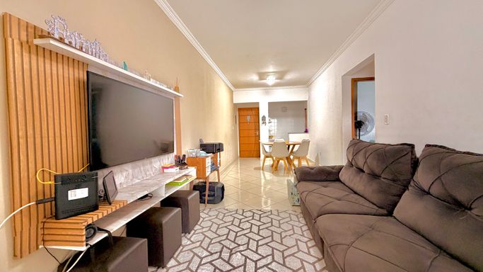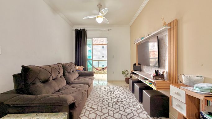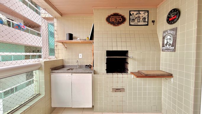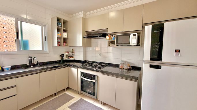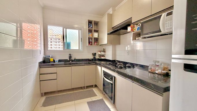 Apartamento à venda em Praia Grande no bairro Aviação com 83 metros de área útil, distribuídos em 2 dormitórios, sendo 1 suíte, além de 1 banheiro social. O imóvel conta com sala espaçosa, cozinha espaçosa e sacada com churrasqueira a carvão, oferecendo ambientes bem distribuídos, bem arejados e bem iluminados. Possui móveis planejados na cozinha e nos banheiros, proporcionando melhor aproveitamento dos espaços. O apartamento possui 1 vaga de garagem e está localizado de frente para a rua. Está em região com ótima localização, próximo ao comércio e a aproximadamente 260 metros do mar, oferecendo praticidade no dia a dia e fácil acesso à praia.