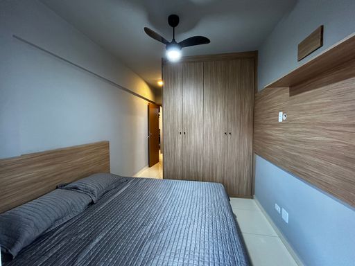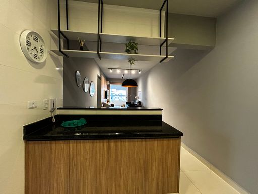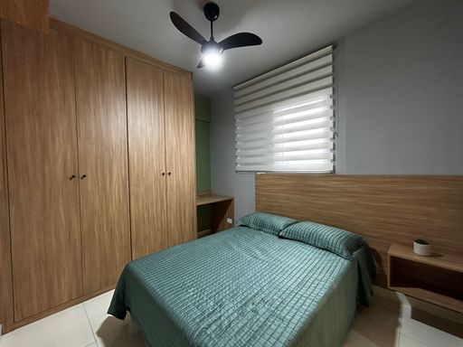A poucos metros da praia, o imóvel conta com uma sala ampla e climatizada, ideal para momentos de descanso em família. A sacada gourmet com churrasqueira elétrica proporciona um espaço perfeito para receber amigos e aproveitar os dias de lazer. A cozinha planejada e os quartos com móveis sob medida garantem funcionalidade e aproveitamento total dos espaços.
