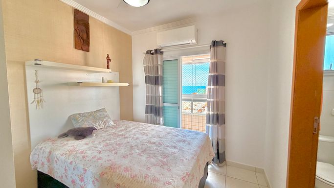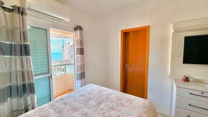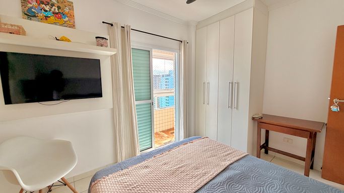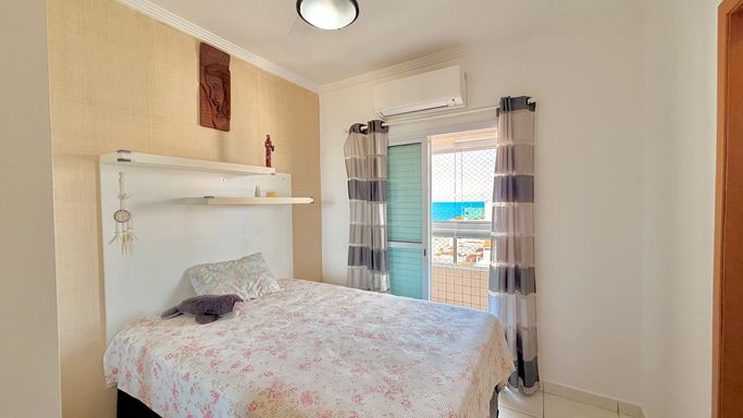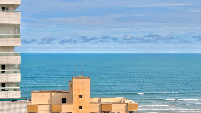 Apartamento à venda em Praia Grande no bairro Aviação com 90 metros de área útil, distribuídos em 2 dormitórios, sendo 2 suítes, além de 1 lavabo. O imóvel conta com sala espaçosa, cozinha espaçosa e sacada com churrasqueira, oferecendo ambientes bem distribuídos, bem arejados e bem iluminados. Possui vista livre e vista para o mar, além de móveis planejados que proporcionam melhor aproveitamento dos espaços. O apartamento possui 1 vaga de garagem e está localizado em região com ótima localização, próximo a comércios e serviços, a aproximadamente 200 metros do mar.