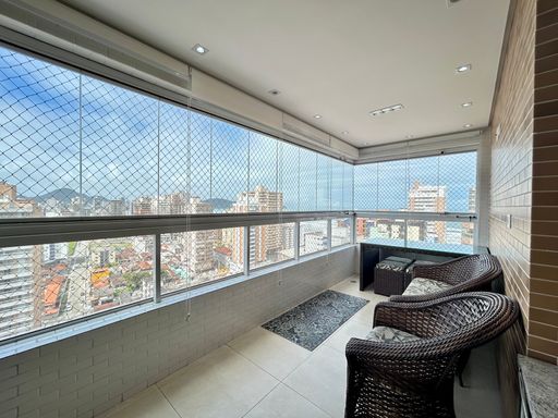 Este imóvel conta com 92 metros de área útil, 2 dormitórios, sendo 1 suíte, 1 banheiro social, mobiliado e equipado com muito bom gosto. Dispõe de 1 vaga de garagem. A planta é ampla e bem distribuída, com sala espaçosa, cozinha funcional e quartos confortáveis. A sacada possui churrasqueira a carvão e oferece vista para o mar. Além disso, o condomínio possui portaria 24 horas e estrutura completa de lazer, garantindo comodidade e segurança para toda a família.