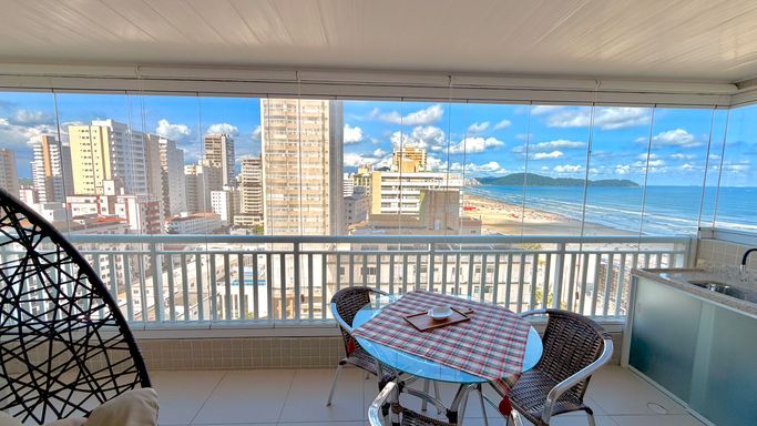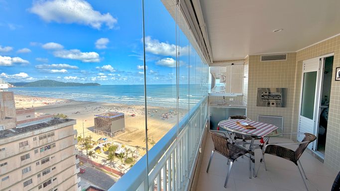 Apartamento à venda em Praia Grande no bairro Aviação, com 97 metros de área útil, localizado de frente para o mar, com vista mar e sol da manhã. O imóvel possui 2 dormitórios, sendo 1 suíte, além de 1 banheiro social, sala espaçosa com excelente iluminação natural, cozinha espaçosa e ambientes bem distribuídos. Os quartos são amplos, o apartamento está reformado e mobiliado, oferecendo praticidade e conforto desde o primeiro dia. Conta com 2 vagas de garagem e possibilidade de financiamento bancário, reunindo localização privilegiada e estrutura completa para moradia ou investimento.