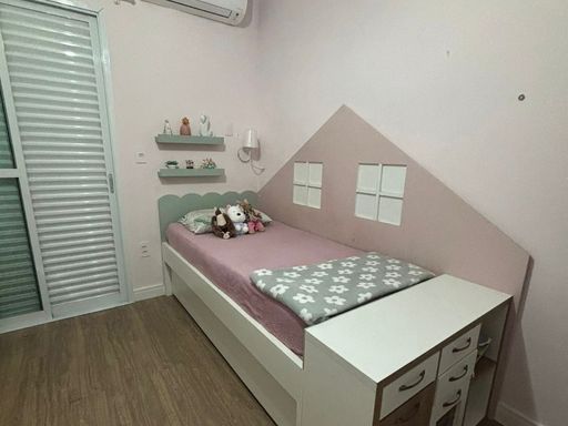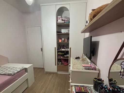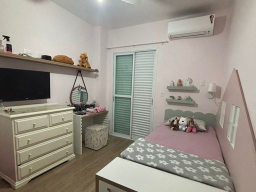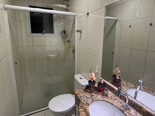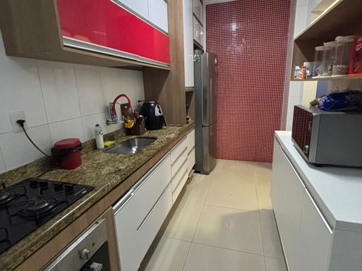 O apartamento possui ar condicionado em todos os ambientes, uma vaga livre e está disponível para financiamento bancário. O empreendimento oferece infraestrutura completa com portaria 24 horas, piscina, salão de festas, salão de jogos e academia.