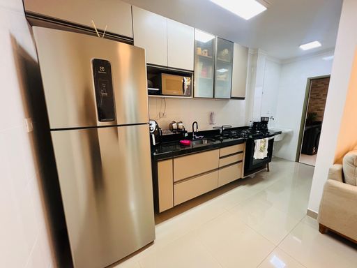 O apartamento possui sala ampla e mobiliada, cozinha planejada, dormitórios com móveis sob medida e ar condicionado em todos os ambientes, garantindo funcionalidade e conforto. Além disso, conta com sacada gourmet, perfeita para receber amigos e familiares. O condomínio oferece completa infraestrutura de lazer com piscina, cinema, academia, brinquedoteca, salão de festas, salão de jogos, sauna e solarium, além de portaria 24 horas para sua segurança.