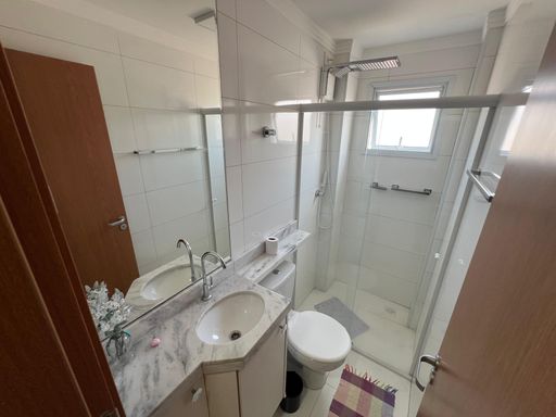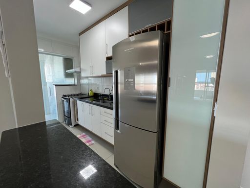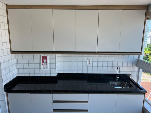 O apartamento está totalmente mobiliado, permanecendo com todos os móveis planejados e equipamentos fixos, sendo retirados apenas itens pessoais e de decoração. Entre os diferenciais, dispõe de sacada gourmet, ar-condicionado em todos os ambientes, sala espaçosa e mobiliada, cozinha planejada e quartos com móveis planejados.