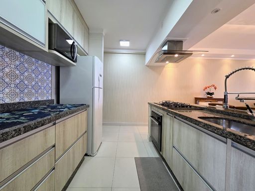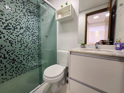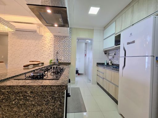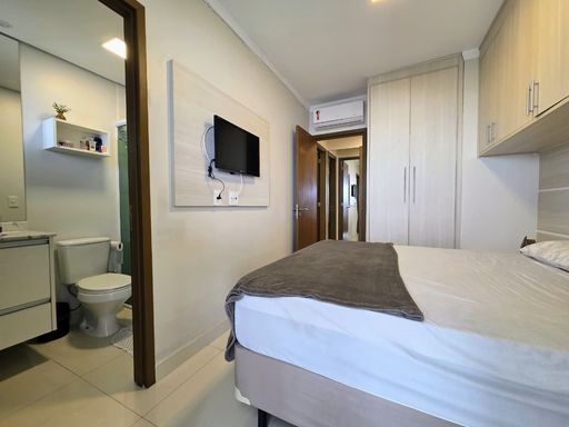 Conta ainda com sacada gourmet com churrasqueira, ideal para momentos de lazer, além de ar condicionado em todos os ambientes, garantindo conforto térmico em qualquer estação. Possui 1 vaga de garagem e aceita financiamento bancário, facilitando a aquisição.