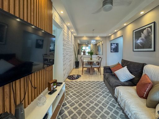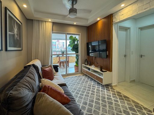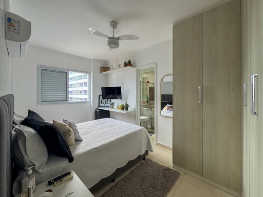 Este excelente apartamento à venda em Praia Grande no Guilhermina oferece 82 metros de área útil e conta com uma vista livre que proporciona mais conforto e privacidade. O imóvel possui 2 quartos, sendo 2 suítes, além de um lavabo, garantindo praticidade para toda a família. As 2 vagas de garagem são demarcadas, proporcionando mais segurança e comodidade. A apenas 750 metros da praia, em cerca de 10 minutos de caminhada você chega ao mar. A sacada gourmet é perfeita para receber amigos e familiares, complementada pela integração dos ambientes que tornam a sala e a cozinha ainda mais espaçosas e confortáveis. O apartamento é semimobiliado com móveis planejados em todos os ambientes..