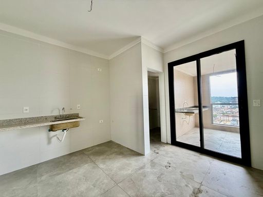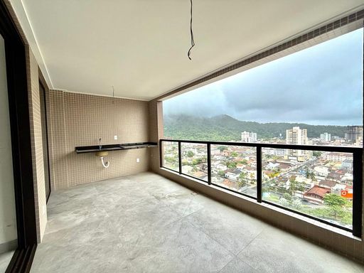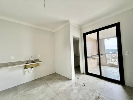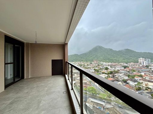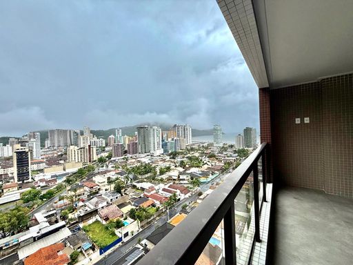 Apartamento à venda em Praia Grande no Canto do Forte, localizado a aproximadamente 450 metros da praia, em um dos bairros mais valorizados da cidade. O imóvel possui 123 metros de área útil, é vazio e pronto para morar, contando com dois quartos, ambos suítes, além de lavabo e banheiro social. A sala é ampla e integrada a uma sacada panorâmica com vista para o mar e para o morro, proporcionando excelente iluminação e ventilação natural. A cozinha é espaçosa e não possui móveis planejados. O apartamento dispõe de duas vagas de garagem demarcadas e aceita financiamento bancário. O empreendimento é de alto padrão e oferece portaria 24 horas, além de uma área de lazer completa com diversas opções para toda a família.