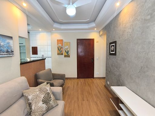 O apartamento possui 53 metros de área útil, distribuídos em 2 quartos, 1 banheiro social, sala e cozinha bem planejadas, além de 1 vaga livre de garagem. Está totalmente mobiliado, sendo que a mobília está inclusa e serão retirados apenas os itens pessoais e decoração. Conta com ar condicionado na sala e no quarto, sala mobiliada, cozinha planejada e quartos com móveis planejados, oferecendo mais organização e aproveitamento inteligente dos espaços.