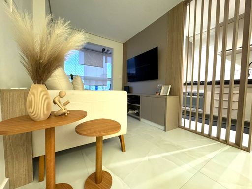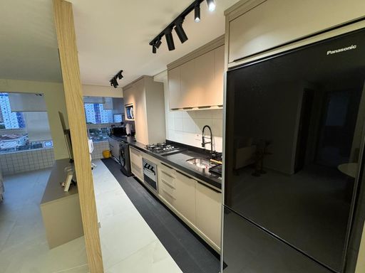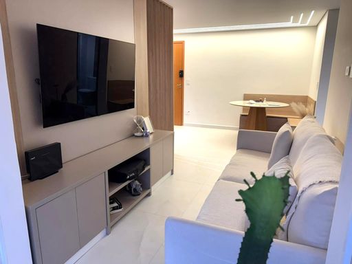 A sala é espaçosa e mobiliada, integrada à sacada gourmet, criando um ambiente funcional e agradável. A cozinha é planejada, garantindo melhor aproveitamento do espaço. Os quartos possuem móveis planejados, oferecendo organização e praticidade no dia a dia. O empreendimento dispõe de portaria remota, piscina, salão de festas, salão de jogos e academia, agregando lazer, segurança e conveniência aos moradores.