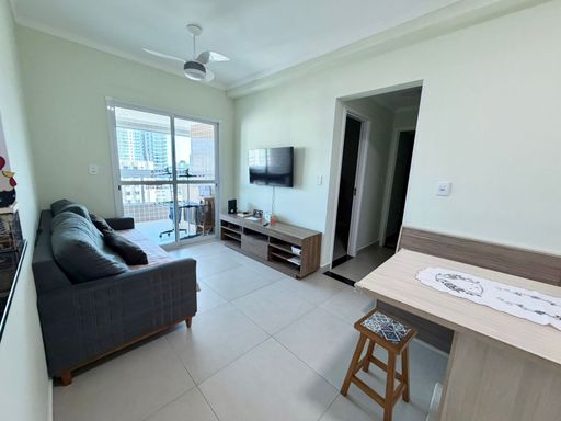 Apartamento à venda em Praia Grande no Canto do Forte, localizado a 500 metros de distância da praia, ideal para quem busca praticidade e conforto em uma das regiões mais valorizadas da cidade. O imóvel possui 69 metros de área útil, distribuídos em 2 quartos, sendo 1 suíte, além de 1 banheiro social. A sala é espaçosa e mobiliada, integrada à sacada gourmet com churrasqueira elétrica. A cozinha é planejada e os quartos contam com móveis planejados. O apartamento permanecerá somente com a mobília planejada e possui 1 vaga livre de garagem. A negociação aceita financiamento bancário.