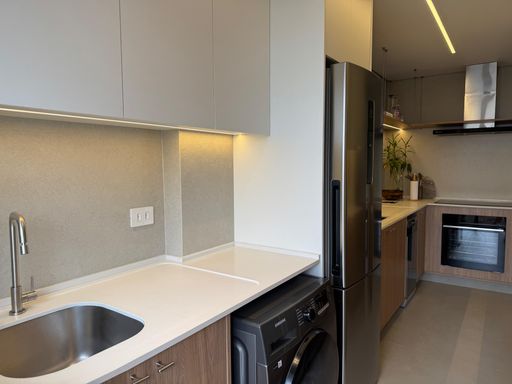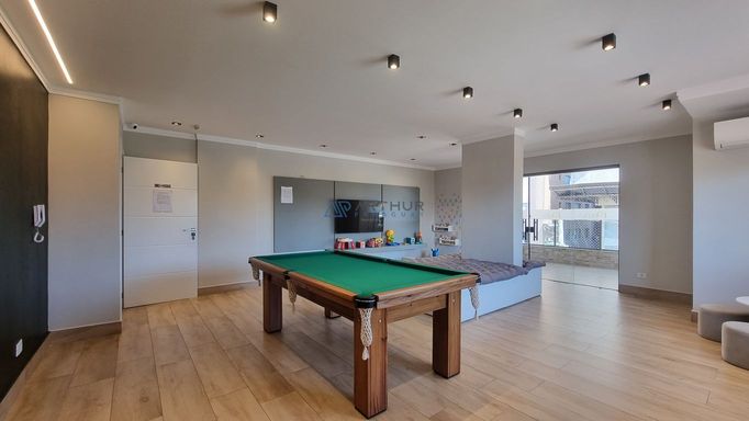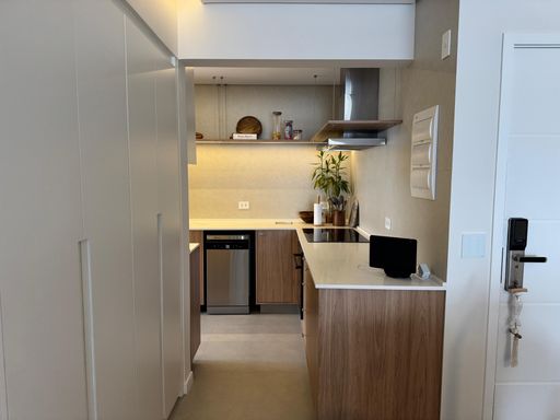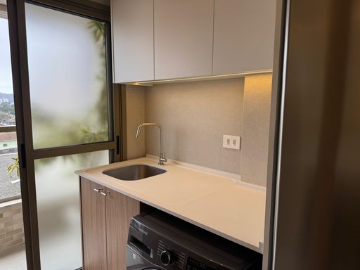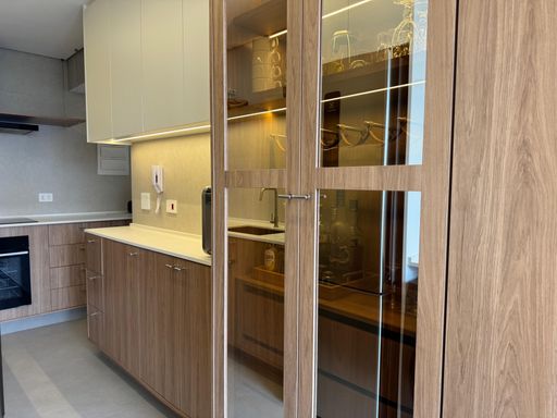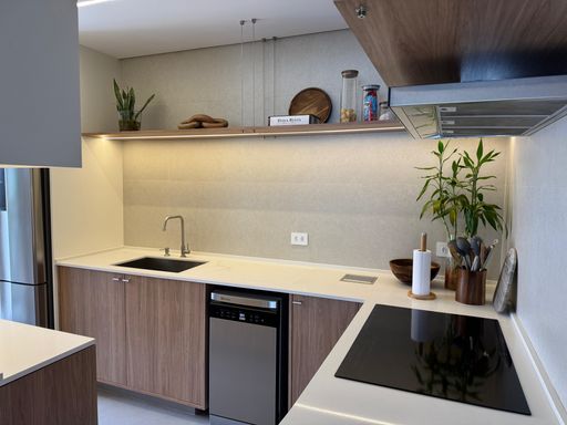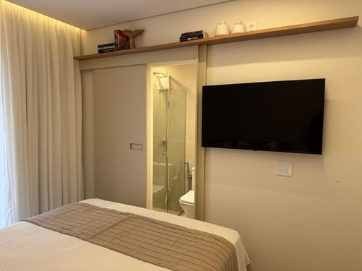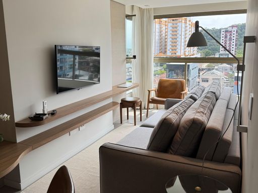 Com 2 dormitórios, sendo 1 suíte, além de um banheiro social e 1 vaga de garagem livre, o apartamento possui uma distribuição inteligente dos ambientes. A sala foi ampliada para a varanda, que recebeu envidraçamento e integração total ao living, criando um espaço amplo, iluminado e perfeito para receber. O imóvel também conta com climatização completa em todos os ambientes e integração com Alexa, garantindo praticidade e tecnologia no dia a dia.