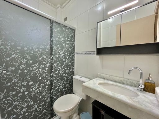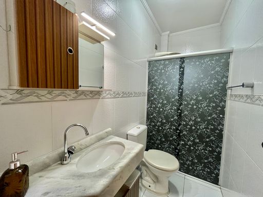 O apartamento conta com dois quartos, sendo uma suíte, além de um banheiro social, sala espaçosa, cozinha planejada e sacada gourmet com churrasqueira a carvão, ideal para momentos de lazer. Os quartos possuem armários e ar condicionado, e todos os ambientes contam com ventiladores. A mobília está inclusa, com exceção de geladeira, máquina de lavar, mesa de vidro, televisão e itens pessoais e de decoração.