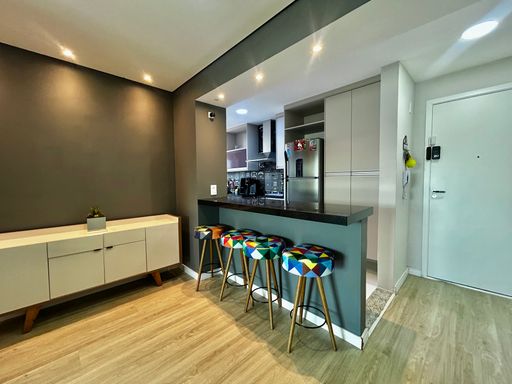 Apartamento à venda em Praia Grande no Canto do Forte com excelente distribuição dos ambientes e 74,00 metros de área útil. O imóvel conta com dois quartos, sendo uma suíte, além de um banheiro social, atendendo bem às necessidades do dia a dia. A planta oferece sala integrada à sacada gourmet, com ponto para churrasqueira, proporcionando um espaço funcional para convivência. O apartamento possui ainda uma vaga de garagem e infraestrutura para ar condicionado. O empreendimento dispõe de área de lazer completa, com piscina, sauna, salão de festas, salão de jogos e academia, oferecendo conforto e praticidade para toda a família.