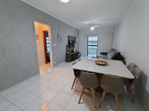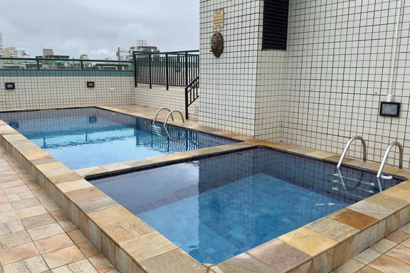 Apartamento para venda em Praia Grande no Canto do Forte, com 82 metros de área útil, localizado a 150 metros da praia. O imóvel está no 8º andar, é semimobiliado e conta com 02 quartos, sendo 01 suíte, além de 01 banheiro social e 01 vaga de garagem. O edifício possui elevador e portaria. O empreendimento aceita pet e oferece piscina e salão de festas com churrasqueira a carvão. A localização conta com fácil acesso a comércios como Carrefour, Pão de Açúcar, padarias e farmácias.