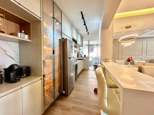 O prédio oferece estrutura completa de lazer e segurança, incluindo portaria 24 horas, piscina, cinema, salão de festas, salão de jogos, sauna, brinquedoteca e academia.