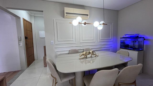 Apartamento à venda em Praia Grande no bairro Boqueirão. Este imóvel oferece uma localização estratégica, a apenas 300 metros da praia, proporcionando praticidade para quem busca viver perto do mar. O apartamento aceita financiamento bancário e conta com 2 quartos, sendo 1 suíte, além de uma sala espaçosa e mobiliada que integra perfeitamente a sacada gourmet com churrasqueira elétrica. Com 87 metros de área útil, dispõe de cozinha planejada, quartos com móveis planejados e permanece totalmente mobiliado, sendo retirados apenas itens pessoais. O condomínio oferece uma estrutura completa com portaria remota 24 horas, piscina e diversas áreas de lazer, garantindo conforto e segurança.