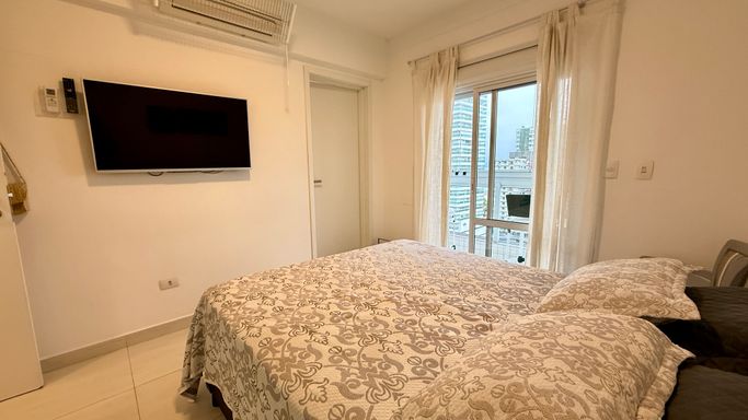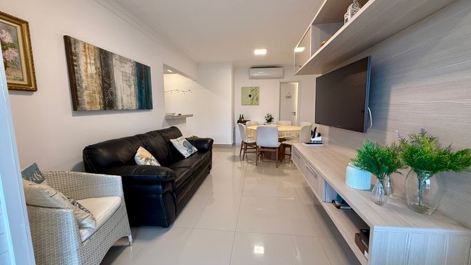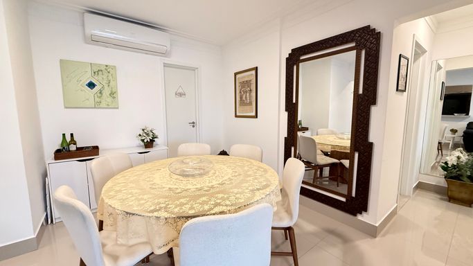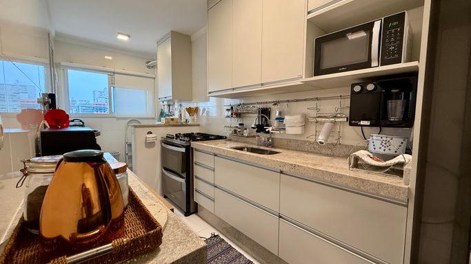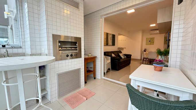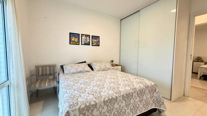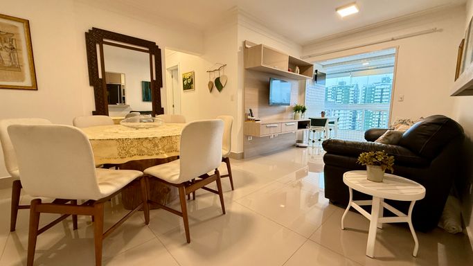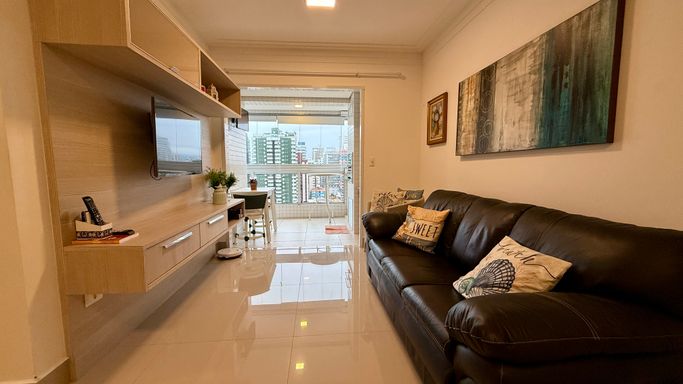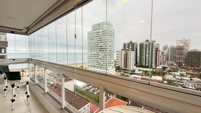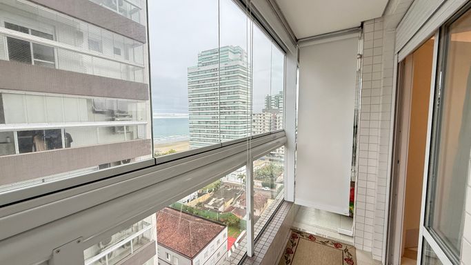 A sala espaçosa proporciona um espaço aconchegante para o dia a dia e se conecta perfeitamente à vista deslumbrante para o mar. Localizado no Canto do Forte, o apartamento está em uma região privilegiada, próximo a comércios, serviços e opções de lazer.