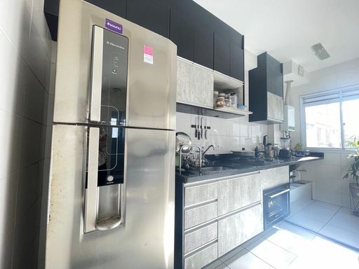 Permanecem os planejados e geladeira, cooktop e aquecedor a gás